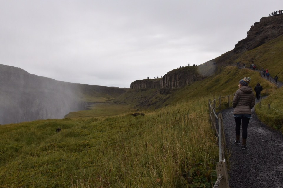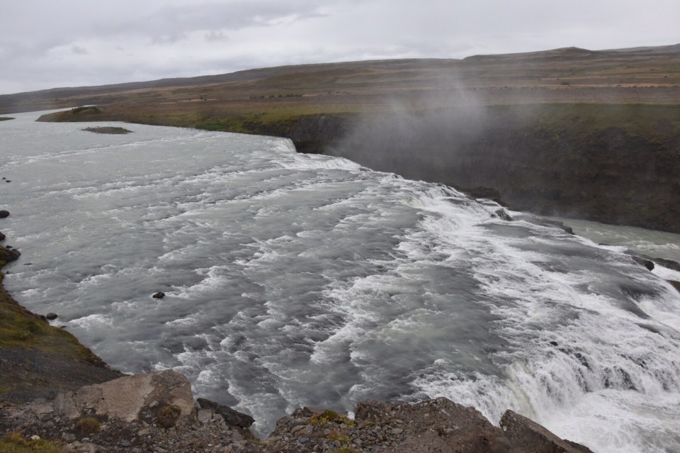 Hitting the road we drove toward Gullfoss Falls, and the drive there was beautiful. The sheep really do roam free here, they are everywhere. Some areas even have slower speed limits because of sheep crossing.