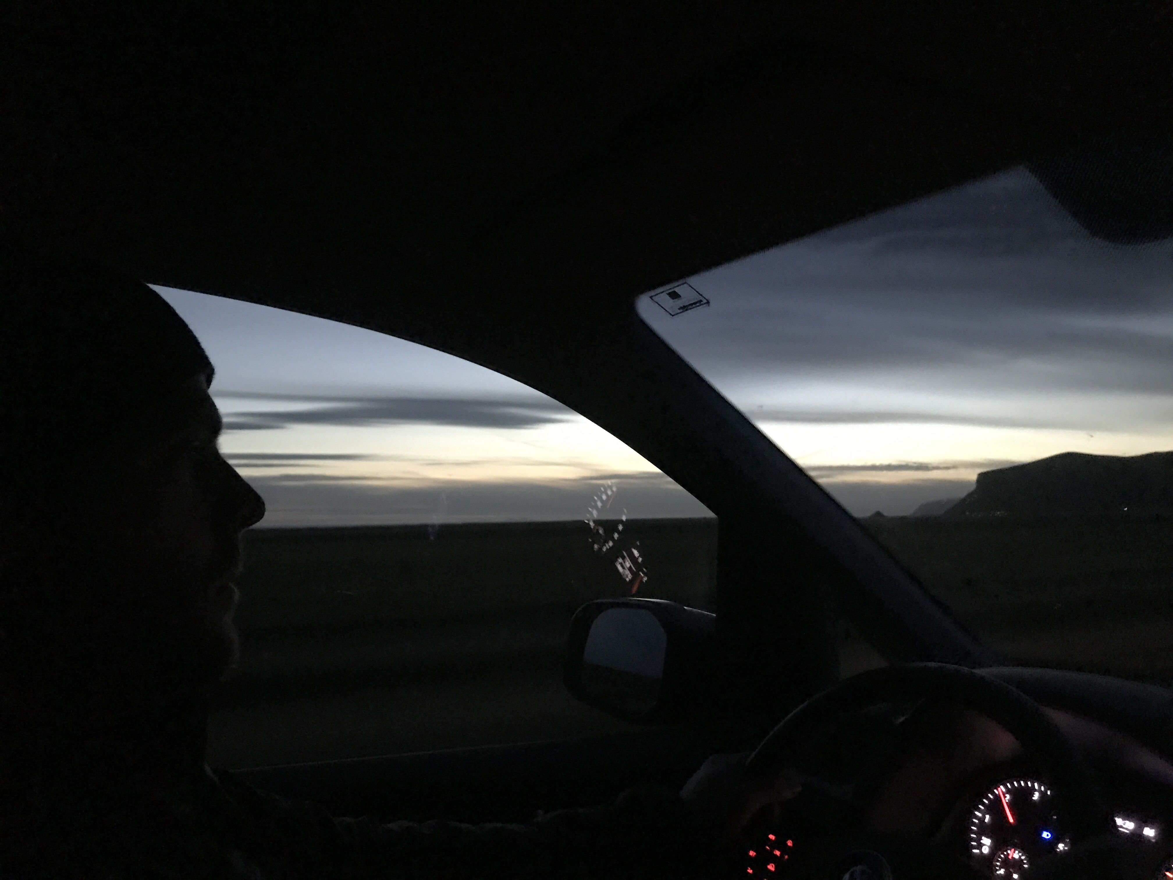 With our bellies full, we hit the road to drive to a campsite closer to our next day adventure. We were driving toward the residual light of the setting sun, which caused such an amazing contrast on all the mountains around us.