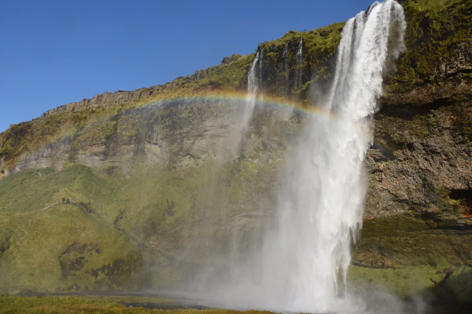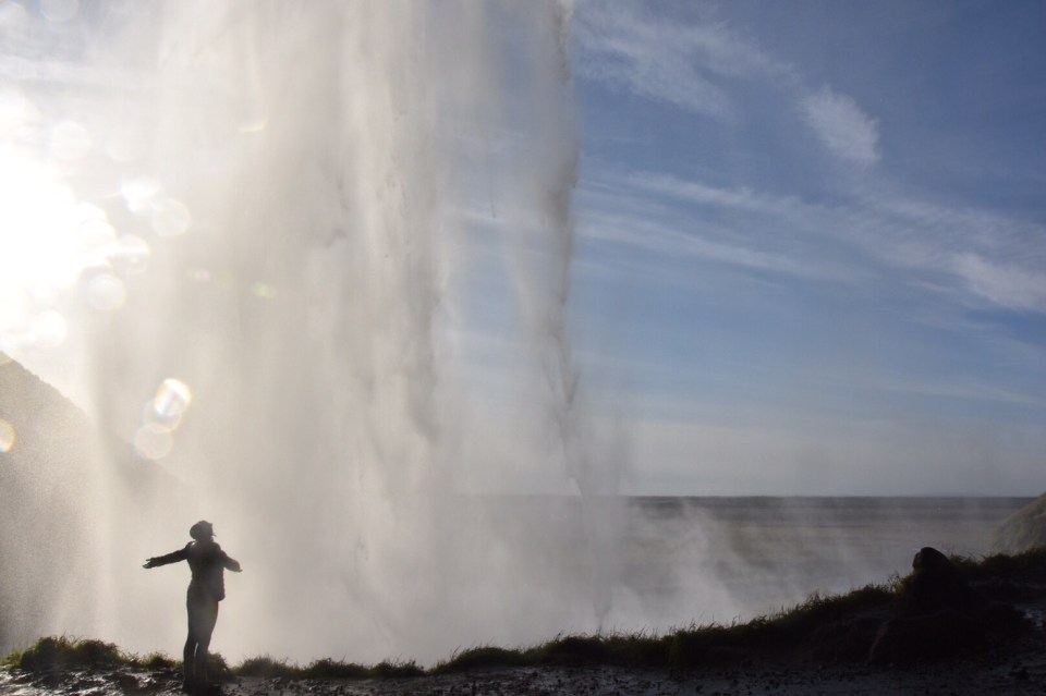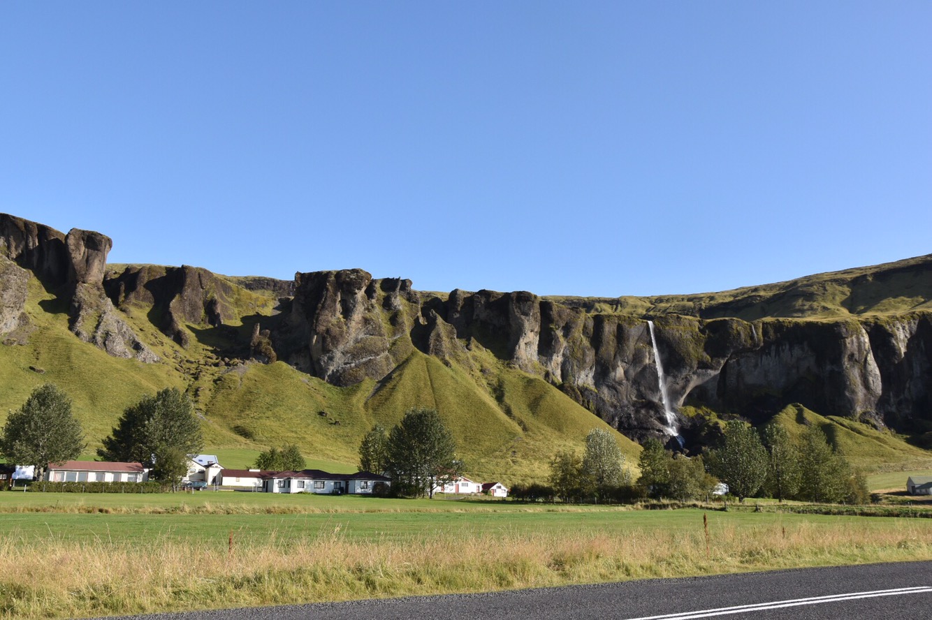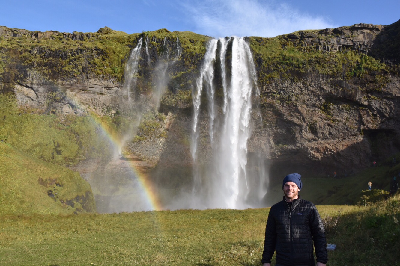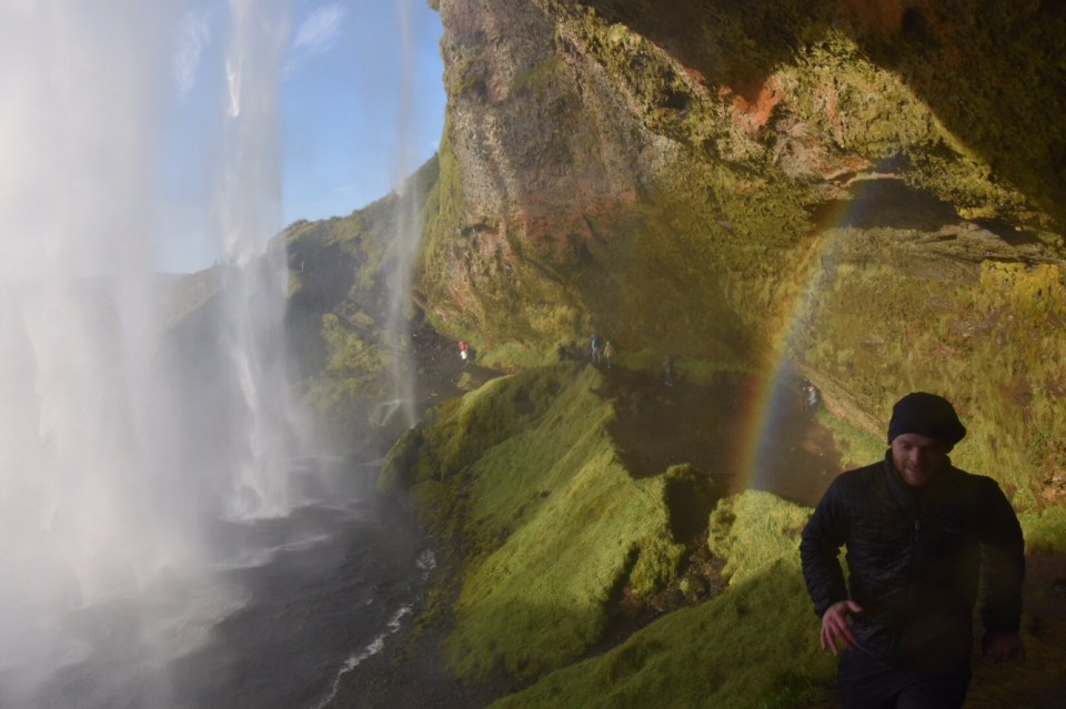 We moved along to see Seljalandsfoss Waterfall, another place that made me yearn to visit Iceland, one more to check off my bucket list! It’s a gorgeous waterfall that allows you to walk behind it’s spraying falls, but be warned – wear rain shells – you will get soaked. Especially if there is a good wind. In which case there was today, but it make it that much more worth it when you go later afternoon and the sun hits the spray off just right and you get a picture perfect rainbow.