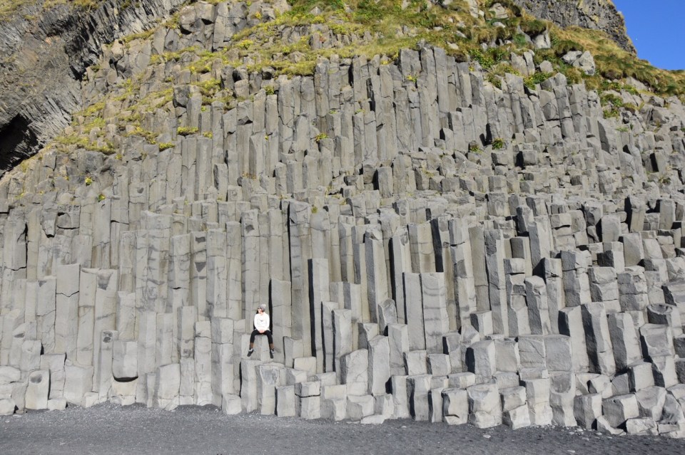 We played in the water a little too, but we’re ultimately drawn to the pillar formed rocks along a cliff side. You could easily step up them and sit up high to take in the amazing view of the beach and waves crashing below.