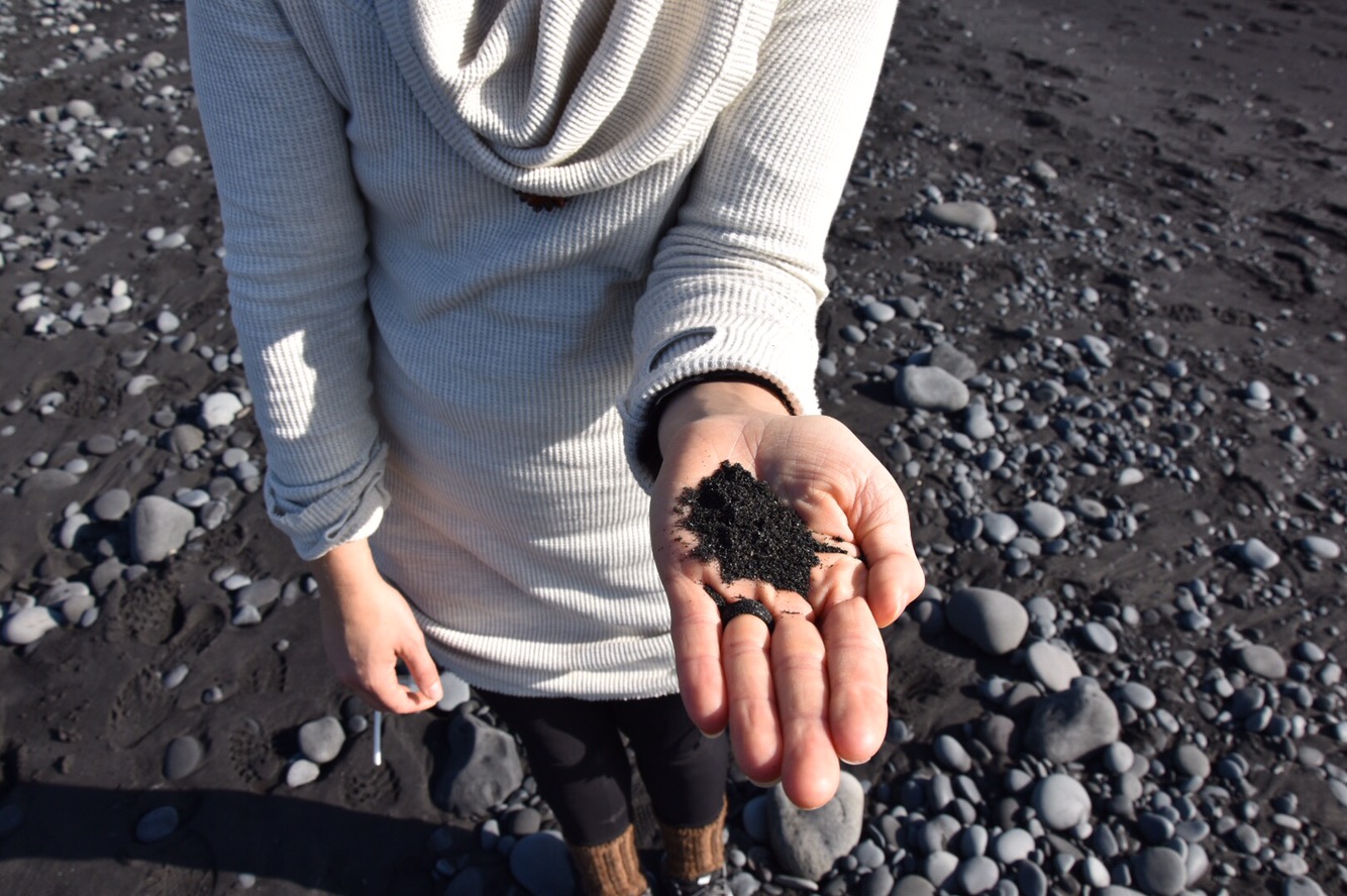 We then started off to our next location, a beautiful beach called Reynisfjara, near the town Vik, which if I ever move to Iceland, is where I would live. It’s so beautiful and the ocean is at its doorstep. This beach has such soft black sand, since Iceland itself is mostly volcanic rock, the ocean wears down the lava rock, causing the sand to be black.