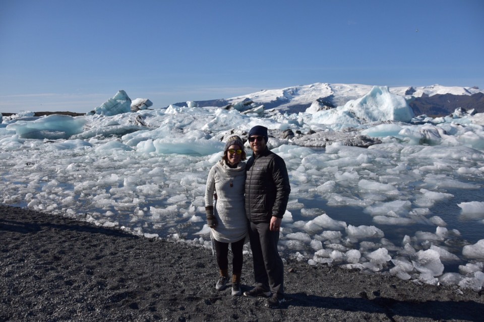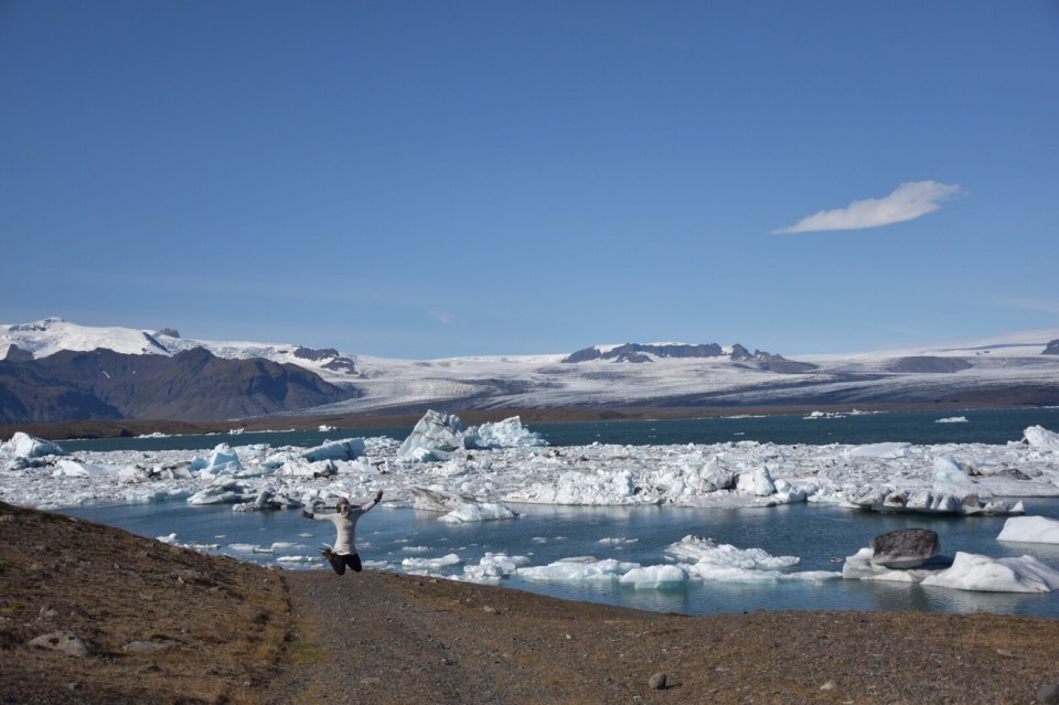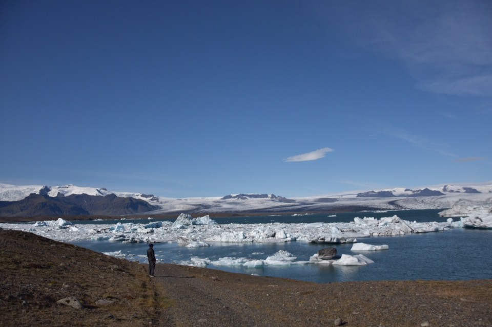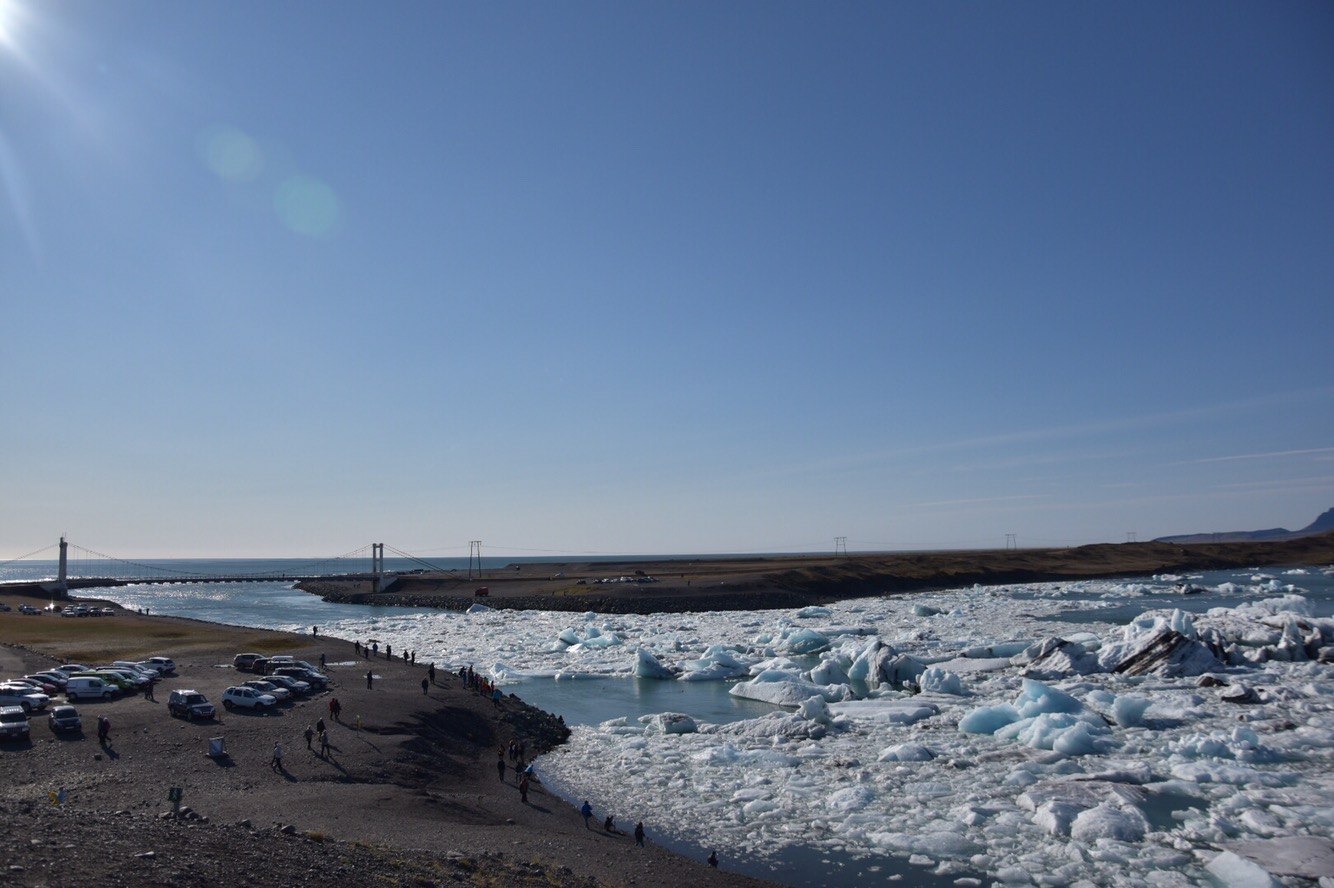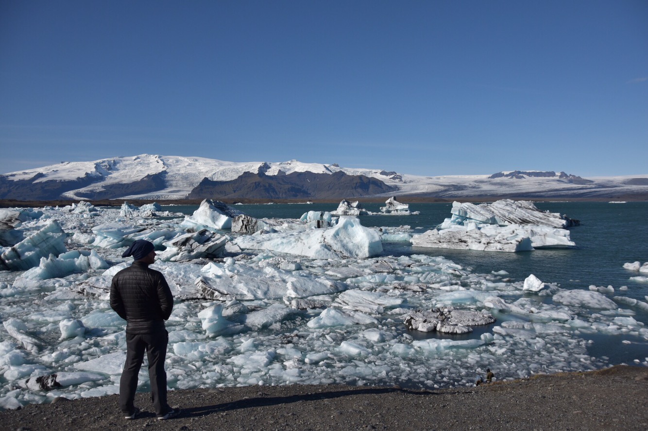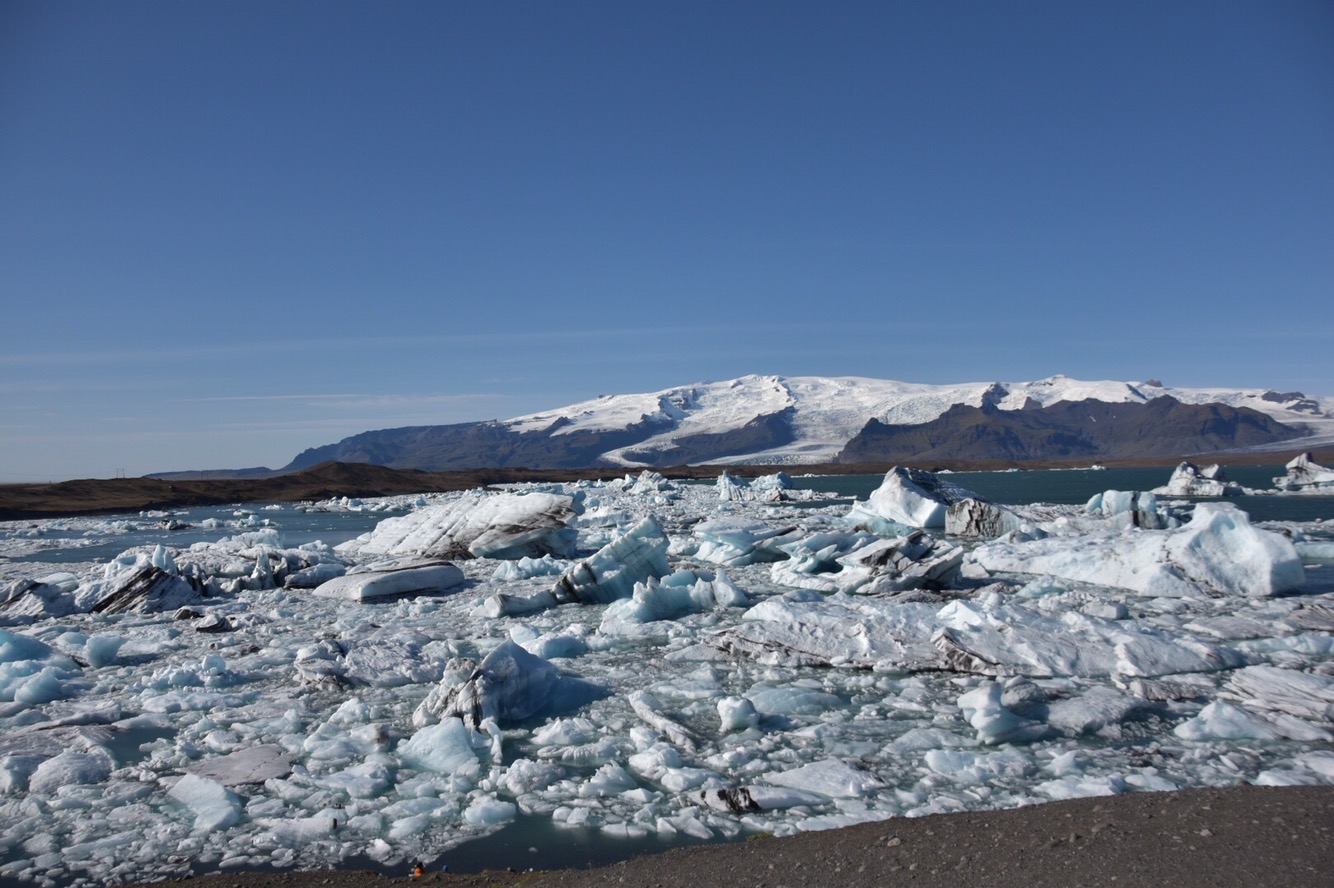 Today we drove a great distance right when we woke; to see the icebergs of Jökulsárlón glacier lagoon. It’s along the southeast coast of Iceland. It was a gorgeous drive, at times it felt like going back in time and driving in the Mesozoic Era. We were driving through valleys of lava rock, black sand and fields that spread all the way to the ocean. The mountains surrounding us varied from being bare, covered in green growth or capped with snow and glaciers. The enormity of everything was magnificent to experience.